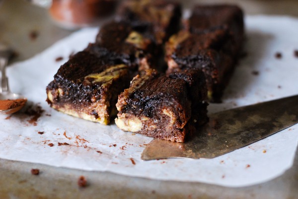 Blanda alla ingredienser och fördela över browniesmeten. Rör med en kniv för att få till ett fint mönster. Grädda i nedre delen av ugnen i ca 35 minuter. Låt svalna och skär i bitar.