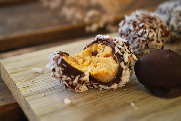 Chokladdoppad fudge med butternutsquash