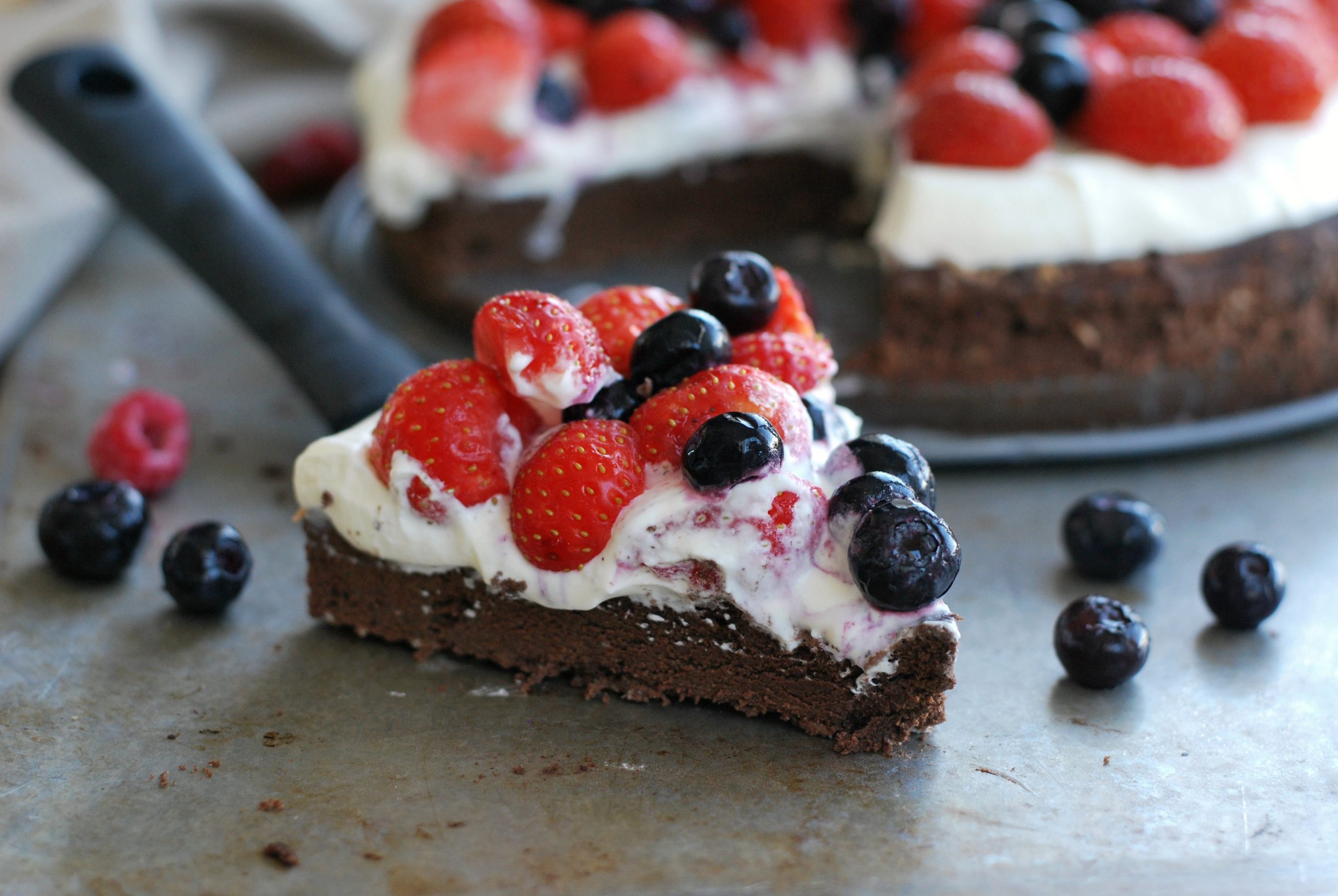 Härligt chokladig gräddtårta med bär! Grunden är en chokladbotten som är som en brownie, vilken är toppad med vispad Läs mer