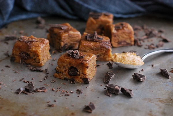 För ett par månader skapade jag ett recept på “cookie dough fudge”. Det var ett gäng goda, lite sega och karamellsmakande godbitar med massor av hackad choklad i. Jag gjorde dom både med och utan chokladsmak (både med gott resultat), med denna gång valde jag att göra de “neutrala”. Skillnaden mot föregående gånger är att jag bytt ut havren mot mandelmjöl. Och det passar lika bra det tycker jag (man får dock öka mängden mandelmjöl något i förhållande till havremjöl), och gör att man får ett mer lågkolhydratsresultat.